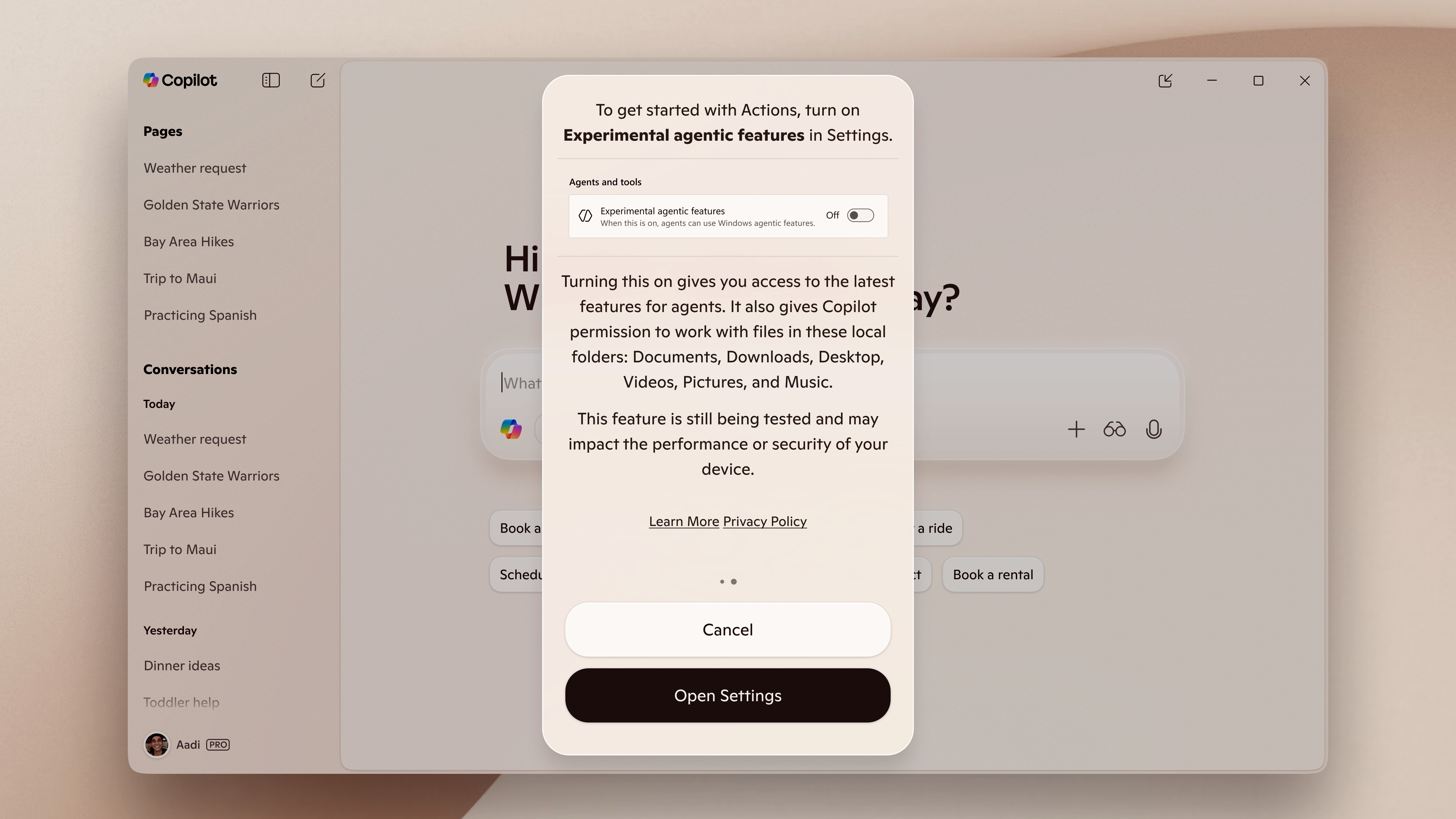 So for example, during the preview period, Microsoft claims that local Copilot Actions will be limited by default to local folders like Documents, Downloads, Desktop, or Pictures, and you'll have to give Copilot permission to access anything outside those broadly-accessible directories.