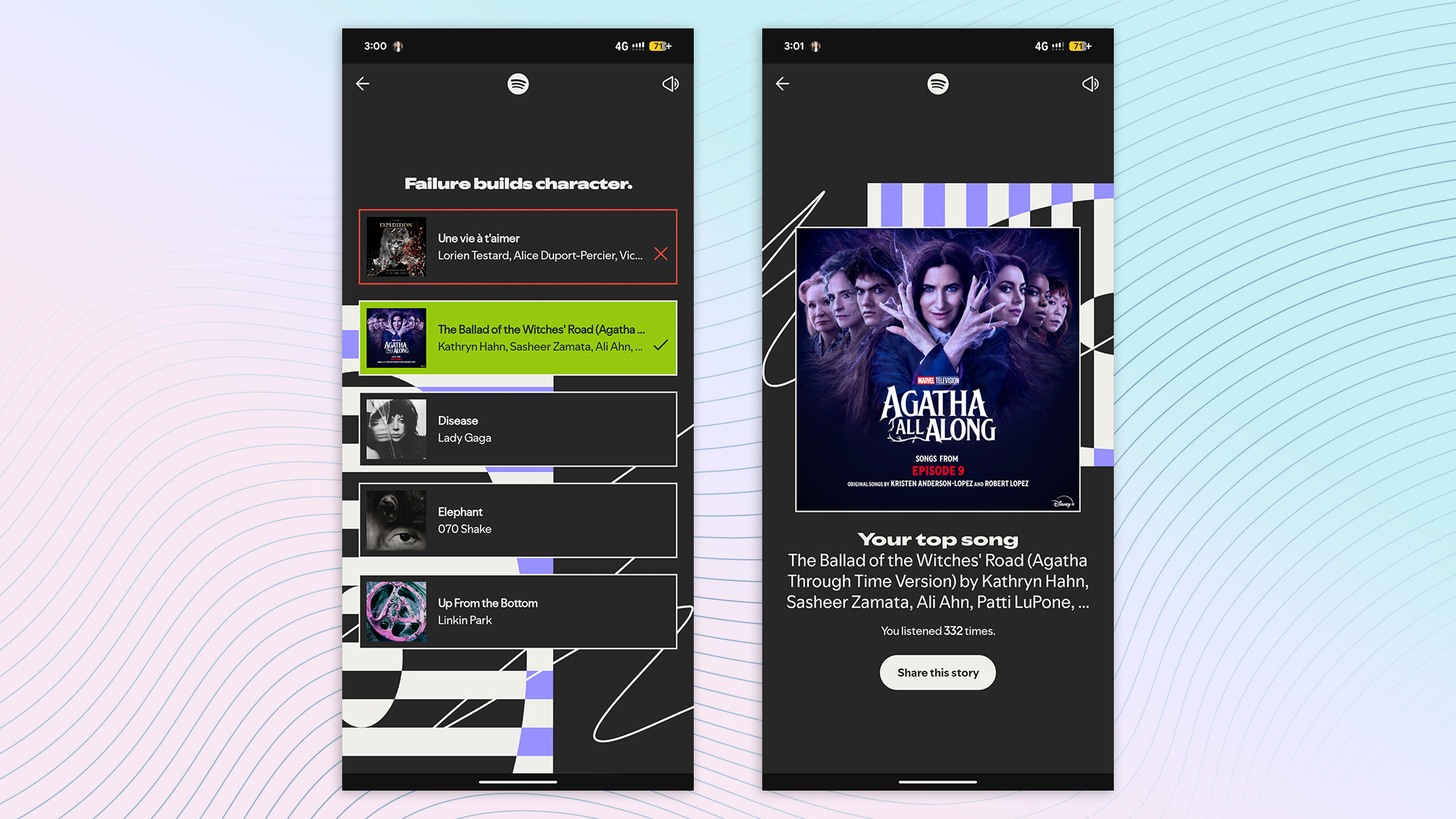 The other interactive elements worked well, too, with Spotify asking me to guess my top song and then telling me that failure builds character. This year's rendition is much improved, that's for certain.