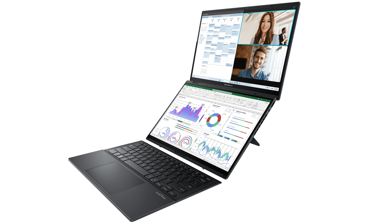 The Asus Zenbook Duo is the best dual-screen laptop because it packs mesmerizing 14-inch OLED displays in one fairly easy-to-carry package, along with the best detachable keyboard and touchpad I’ve used.