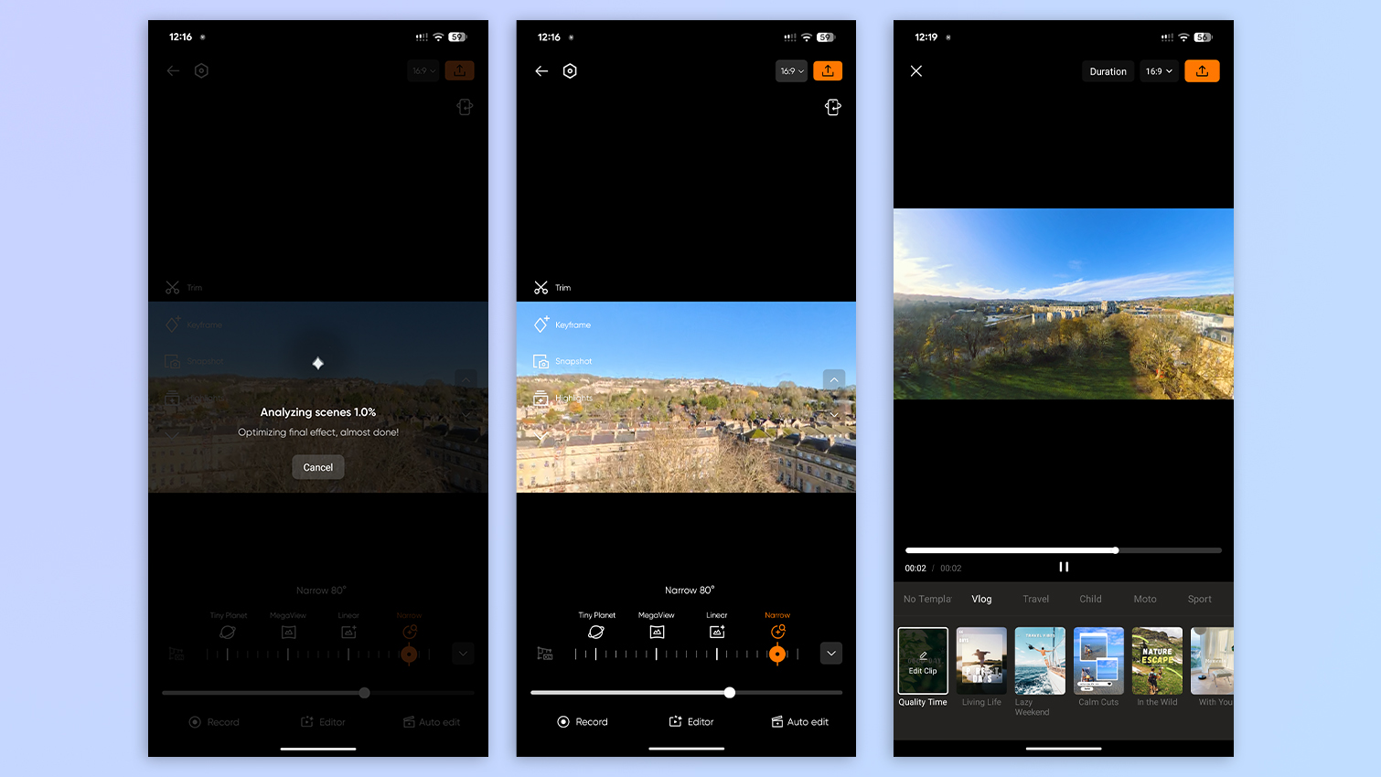 I also appreciate the AI editing tools. Once you’ve selected a clip, the app can automatically add effects, such as Tiny Planet, Whirlwind, etc. to give you good, usable footage. As you can see in the video above, I utilized the Mirror Sky effect, and the app added its own effects and music. It’s worth noting that when we uploaded this video to YouTube, YouTube flagged it for copyright infringement, so creators won't be able to monetize content using these features.