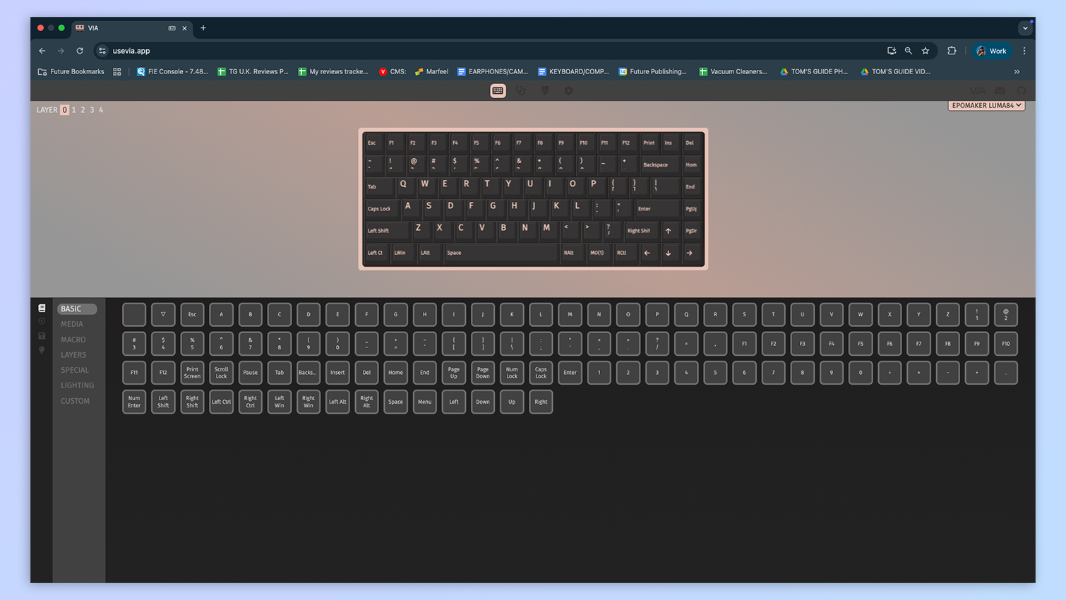 This time around, though, I didn’t have to contend with Windows-only or proprietary software as the Epomaker Luma84 is QMK-enabled and compatible with VIA. All you have to do is plug the keyboard into your Windows or macOS machine, fire up the web-based app and start customizing. I found it easy to remap keys, record macros, adjust the Luma84’s RGB lighting and effects, and update/flash firmware.