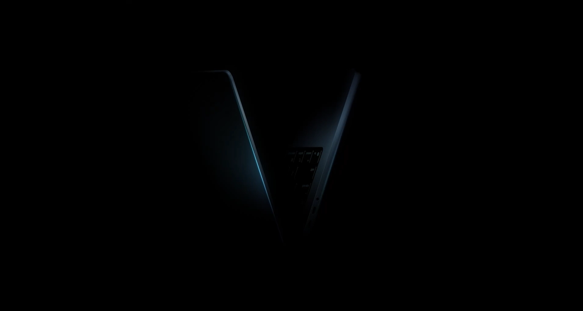 The teaser shows a short animation revealing a glimpse of what looks to be a MacBook Pro along with the words "coming soon." The laptop is shaped like a V, likely referencing the Roman numeral for five.