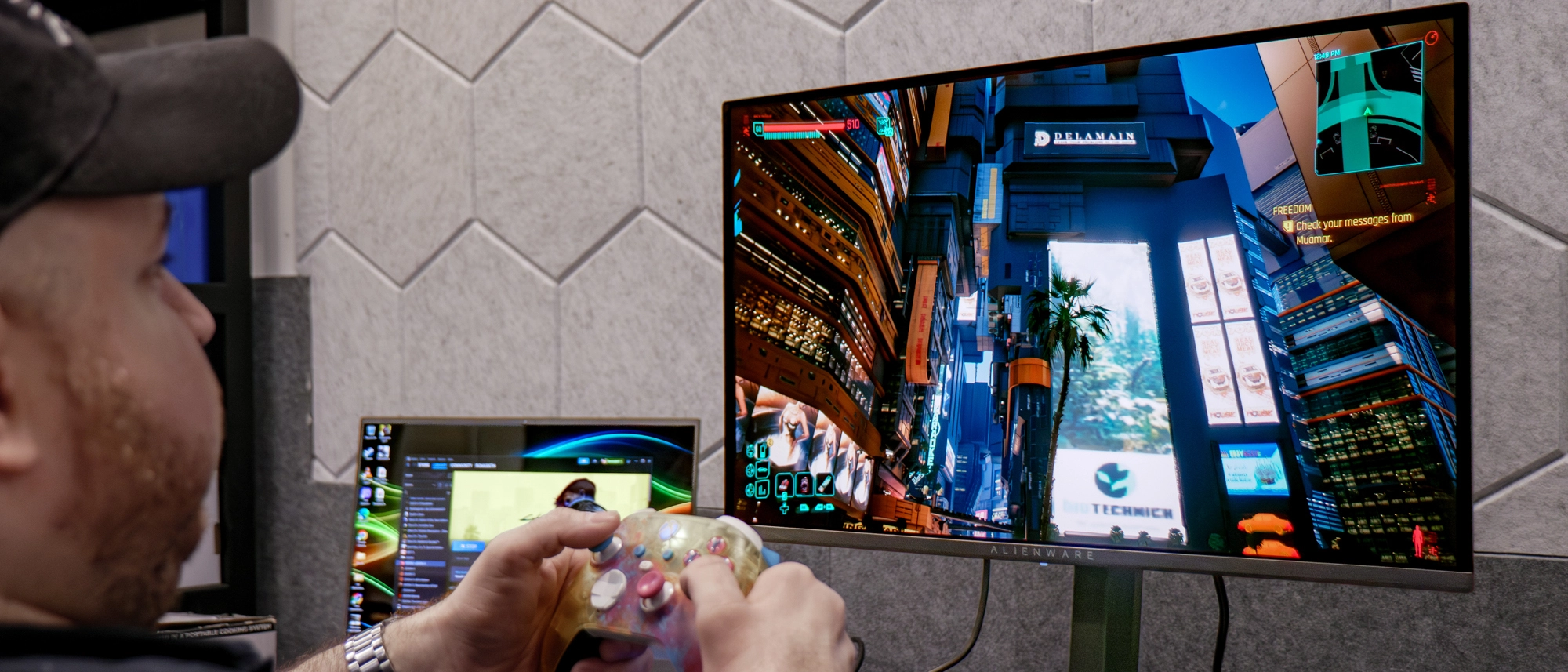 When I tested Cyberpunk 2077 on the AW2726DM, I was impressed by the richness of the colors and the overall sharp image quality. The holographic fish floating above Night City’s busy financial district, along with the towering buildings and bustling streets, made you feel like you were in the middle of this cyberpunk dystopia.