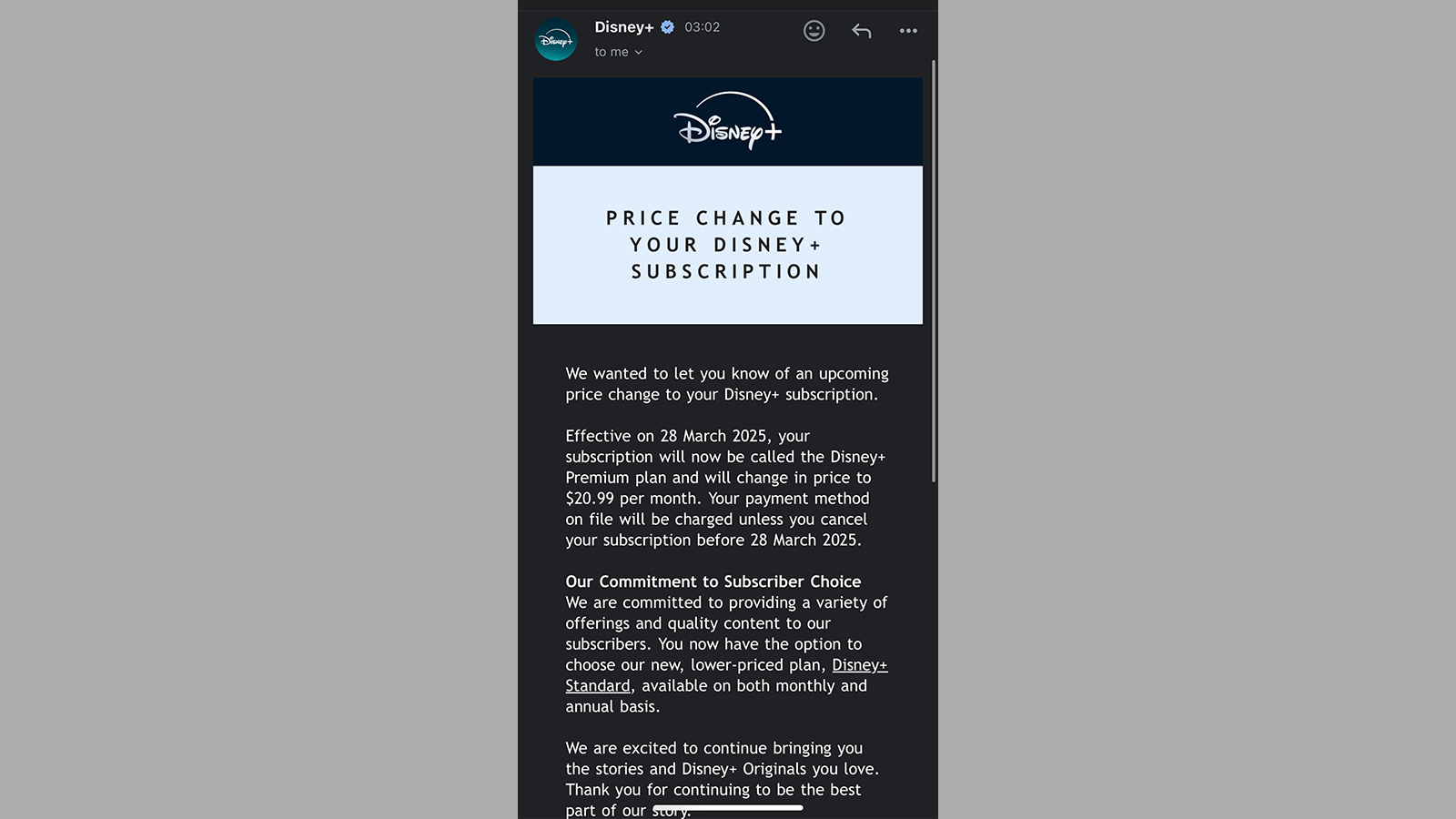 After revealing last week that ESPN is coming to the streamer, Disney Plus has confirmed in emails to subscribers that its Premium offerings — monthly and annual — will increase in price to reflect the platform's upcoming additions. The price change will be effective from March 26, 2025, for existing subscribers — and new subscriptions will see these price changes starting from February 19, 2025.