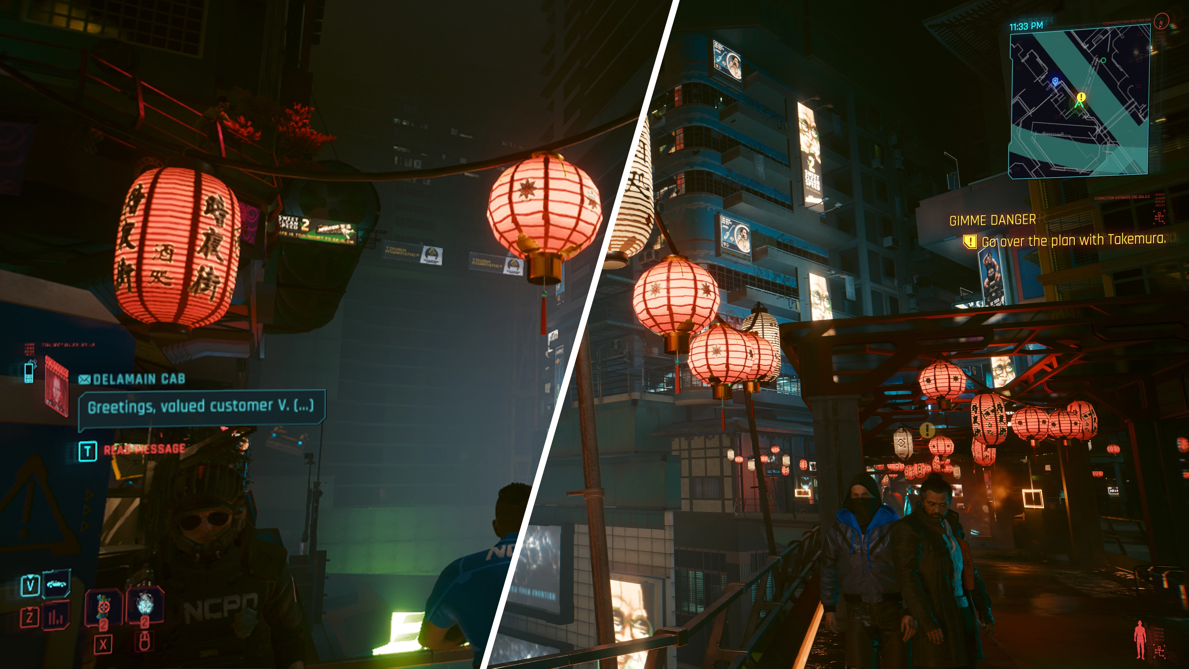 You can see as much in Cyberpunk 2077. The differences are subtle, but in the sharpness of the lamps and the heatwaves coming up from the food cart and distorting the bottles, you can see a little more ghosting and jagged edges in Model L over Model M.