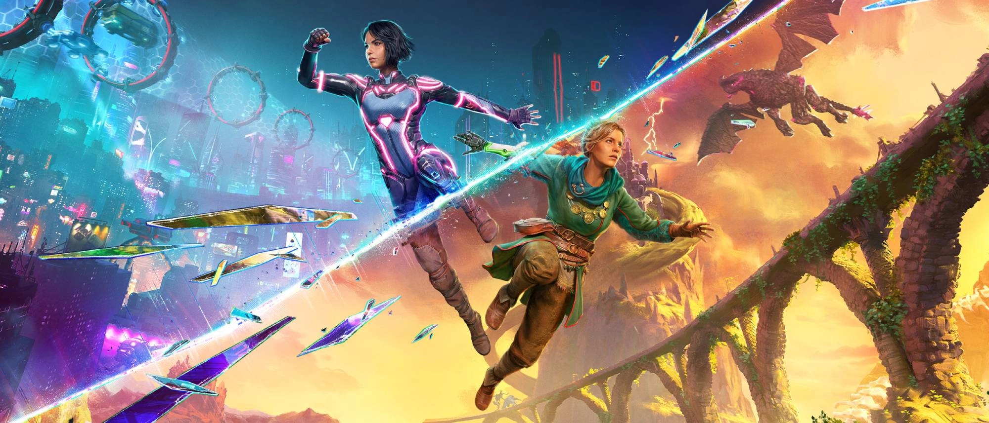 This is typically the point where I’d explain what genre of video game Split Fiction falls into, but the problem is that it leaps across so many that it’s darn difficult to nail down. One moment, you and your partner are running across rooftops in a cyberpunk megalopolis; the next, you’re riding on the backs of large dragons and solving puzzles with your unique abilities.