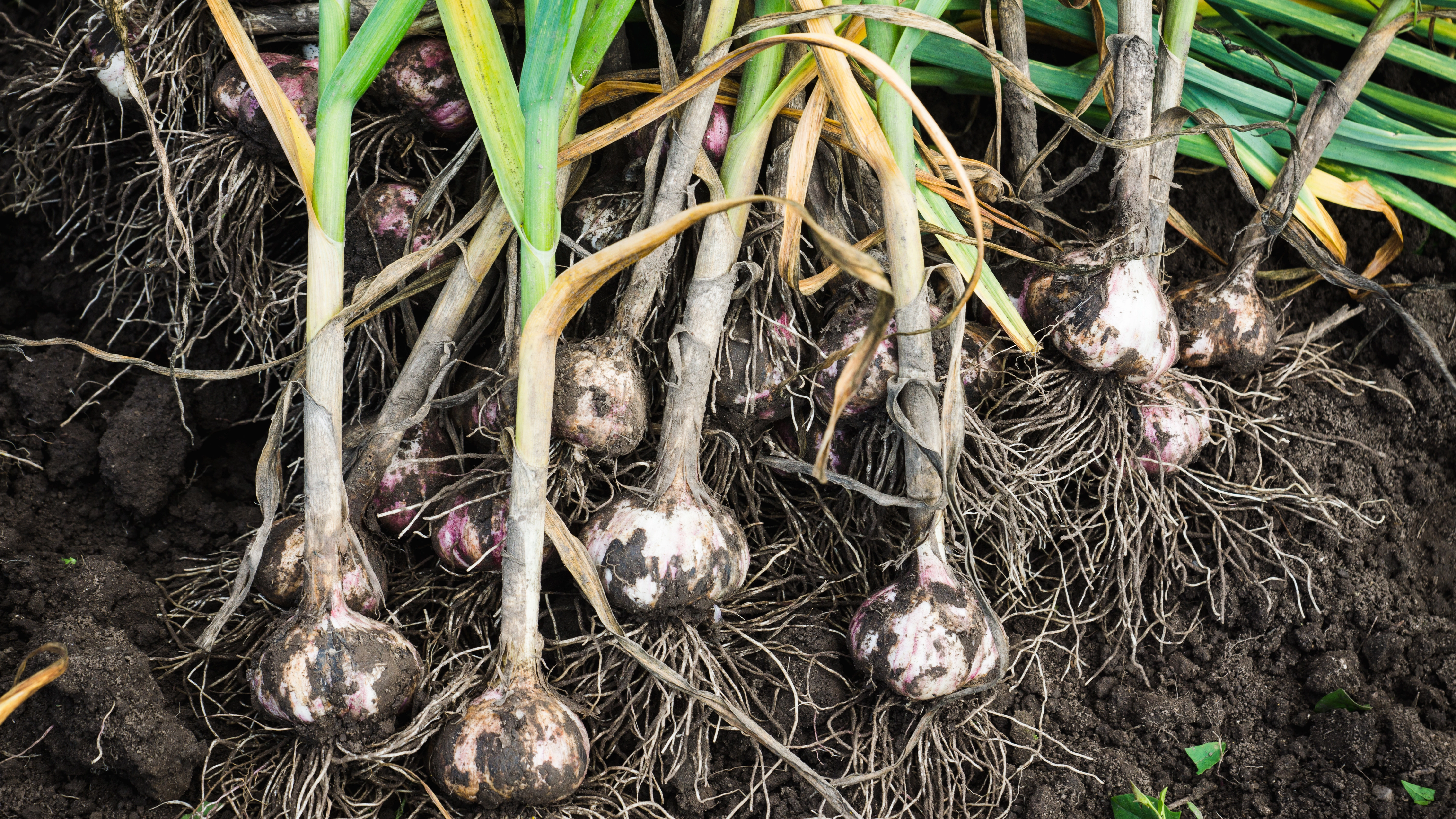 "Make sure to plant your garlic in a location that receives at least six hours of sunlight per day. You should also feed it every three to four weeks throughout the season using a high-nitrogen feed. If the bulbs are still not ready after May, use some compost or diluted liquid fertilizer instead.”