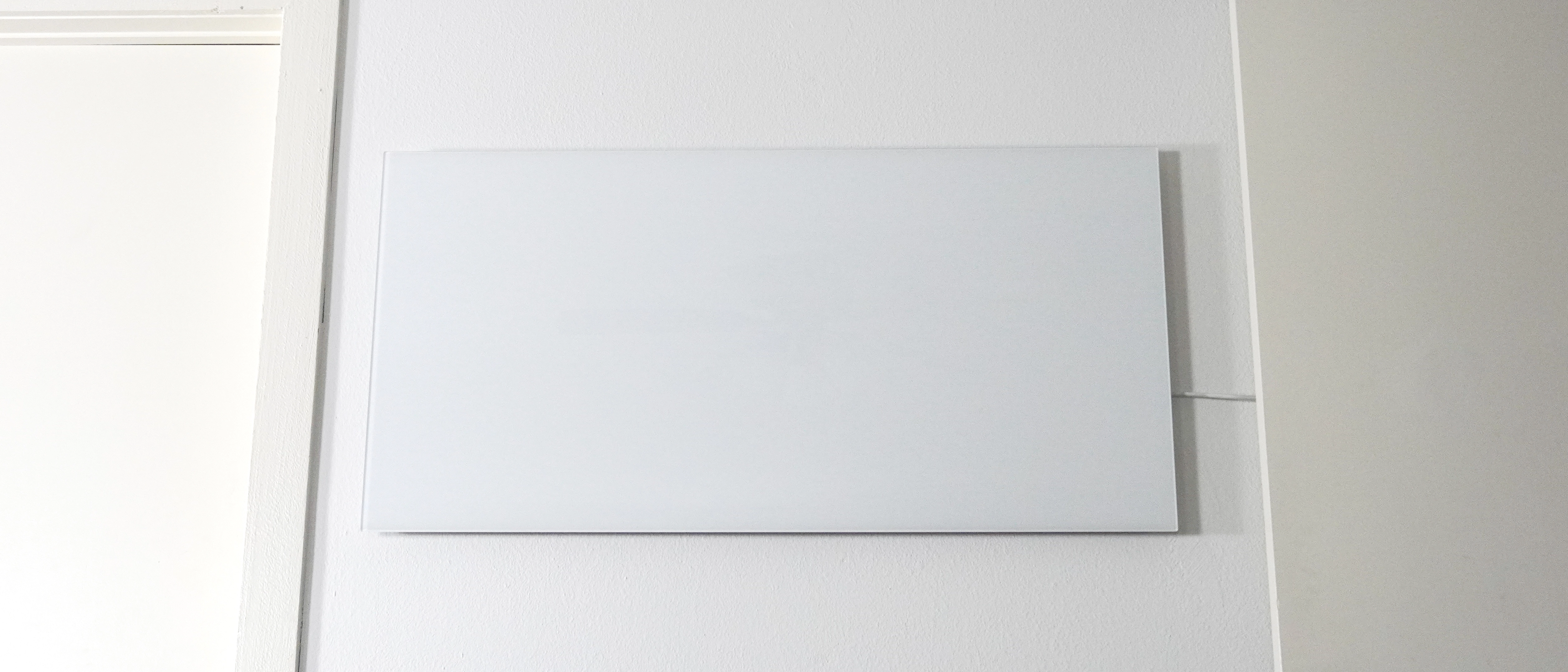 Personally, I love how it looks on my white wall and the way it blends into the background. When I’m using it, it’s a near silent way to heat a single room and when I’m not, its highly reflective surface allows it to double as a mirror which makes even small rooms feel larger.