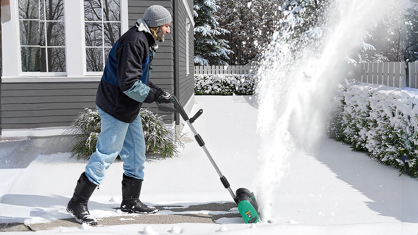 The snow blower is built for clearing porches, driveways, decks, and tight spaces where regular snow blowers are less practical. The adjustable chute direction and dual safety switches add control and peace of mind, and its detachable design makes it more space-efficient while in storage.