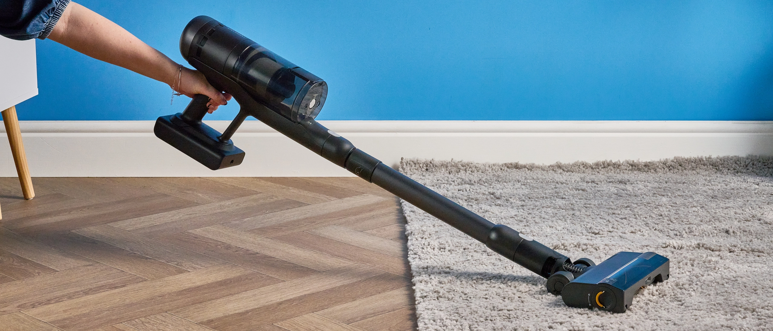 The green headlight to identify dust and a telescopic neck meant I never missed a thing while cleaning, but when I moved to high-pile carpet, the vacuum started to struggle. On higher suction settings, the battery depletes incredibly quickly, and I found the dock was a little bit big and looked more like a statement design piece — so the design will depend on your personal taste.