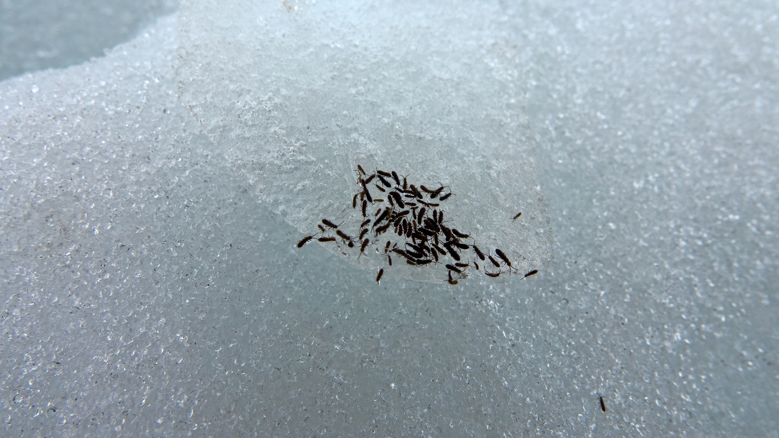 So what is attracting them to the snow? “When the weather shifts and the snow gets a thin wet layer on top, they can move up from the soil and gather on the snow,” adds Frazer.