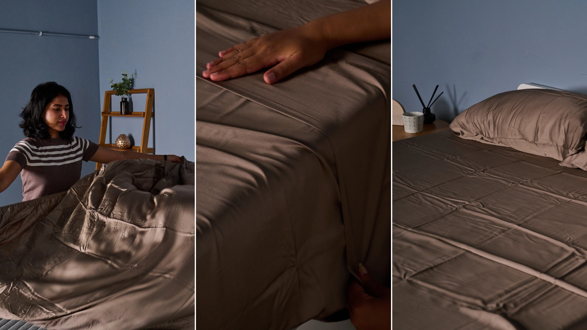 Our in-house reviewers spend two weeks sleeping on each set and putting them through two wash and dry cycles. This lets us gauge the overall performance of a set— how it feels, fits, regulates temperature, its durability and ease of maintenance. We score each parameter out of 5 — 1 indicating poor and 5 meaning it's outstanding.