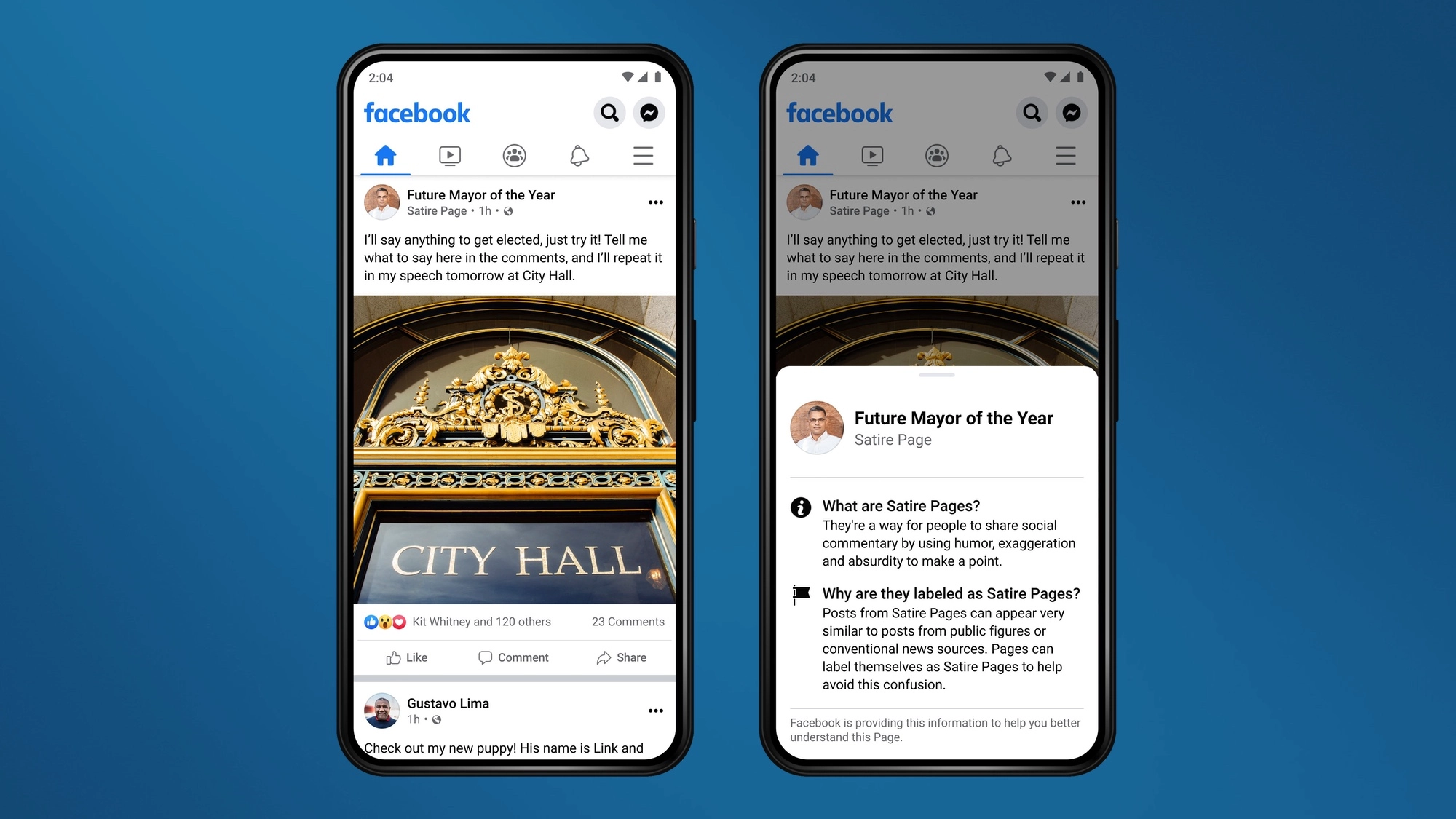 Starting today in the US, we’re testing a way to give people more context about the Pages they see. We’ll gradually start applying labels including 'public official,' 'fan page' or 'satire page' to posts in News Feed, so people can better understand who they’re coming from. pic.twitter.com/Bloc3b2ycbApril 7, 2021