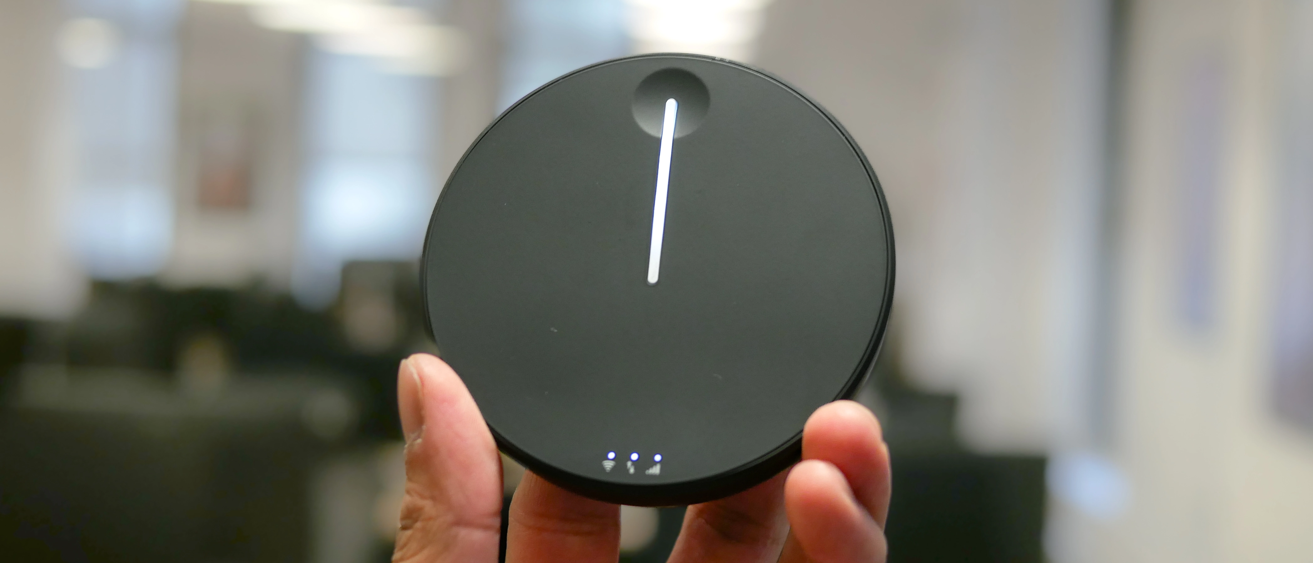 There’s just a single button on the unit that’s used to turn the device on and off — and nothing more than that. Three other LED light indicators show if it’s connected to the network, actively sending/receiving data, and if the Wi-Fi network is running. Lastly, the USB-C port on the side charges the unit when it’s low on battery.