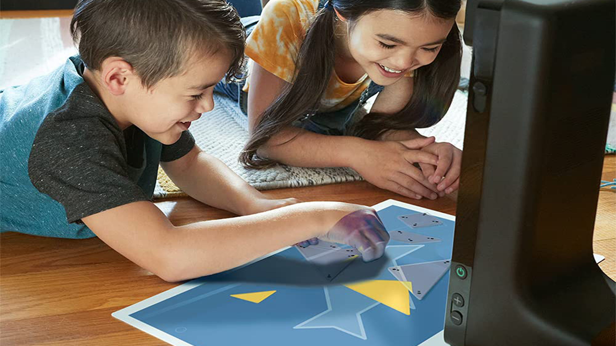 In many ways, the Glow is essentially an Amazon Fire Kids tablet writ large, but instead of a touchscreen, the device projects the screen onto a large mat. The projection itself measures 16.7 x 9.4 inches, so there’s a bit of a border around the entire mat.
