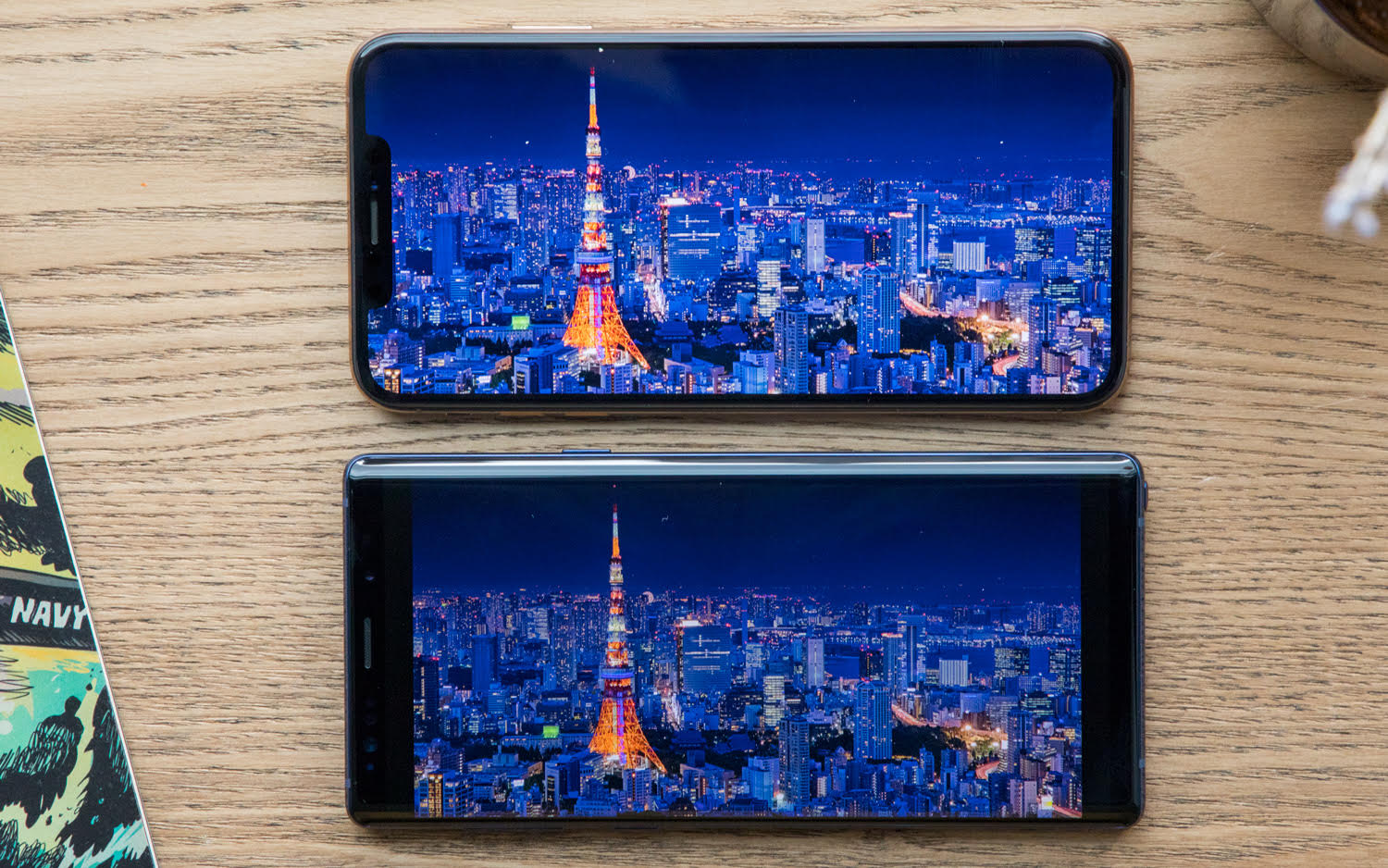 In our own iPhone XS Max review, we praised the display for its brightness (over 600 nits) and color accuracy. In side-by-side comparisons with the Galaxy Note 9, some preferred the more realistic hues offered by the iPhone XS Max's panel, but others preferred the more saturated colors of the Note 9, and you can engage different screen modes. However, the iPhone XS Max has a slight edge to our eyes because you can easily get a brighter picture indoors.