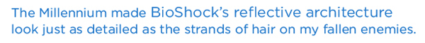 The acrobatic gunslinging of BioShock Infinite was a joy to play on the Millennium, which made the game's fluffy clouds and reflective architecture look just as detailed as the strands of hair on my fallen enemies. The game ran at a supersmooth 237 fps when benchmarked at 1080p with the graphics set to Ultra, and played at a still-speedy 170 fps at 2560 x 1600p. To put this into perspective, the Erazer X510 ran Infinite at 63.6 fps at its native 1080p with the graphics on Ultra.
