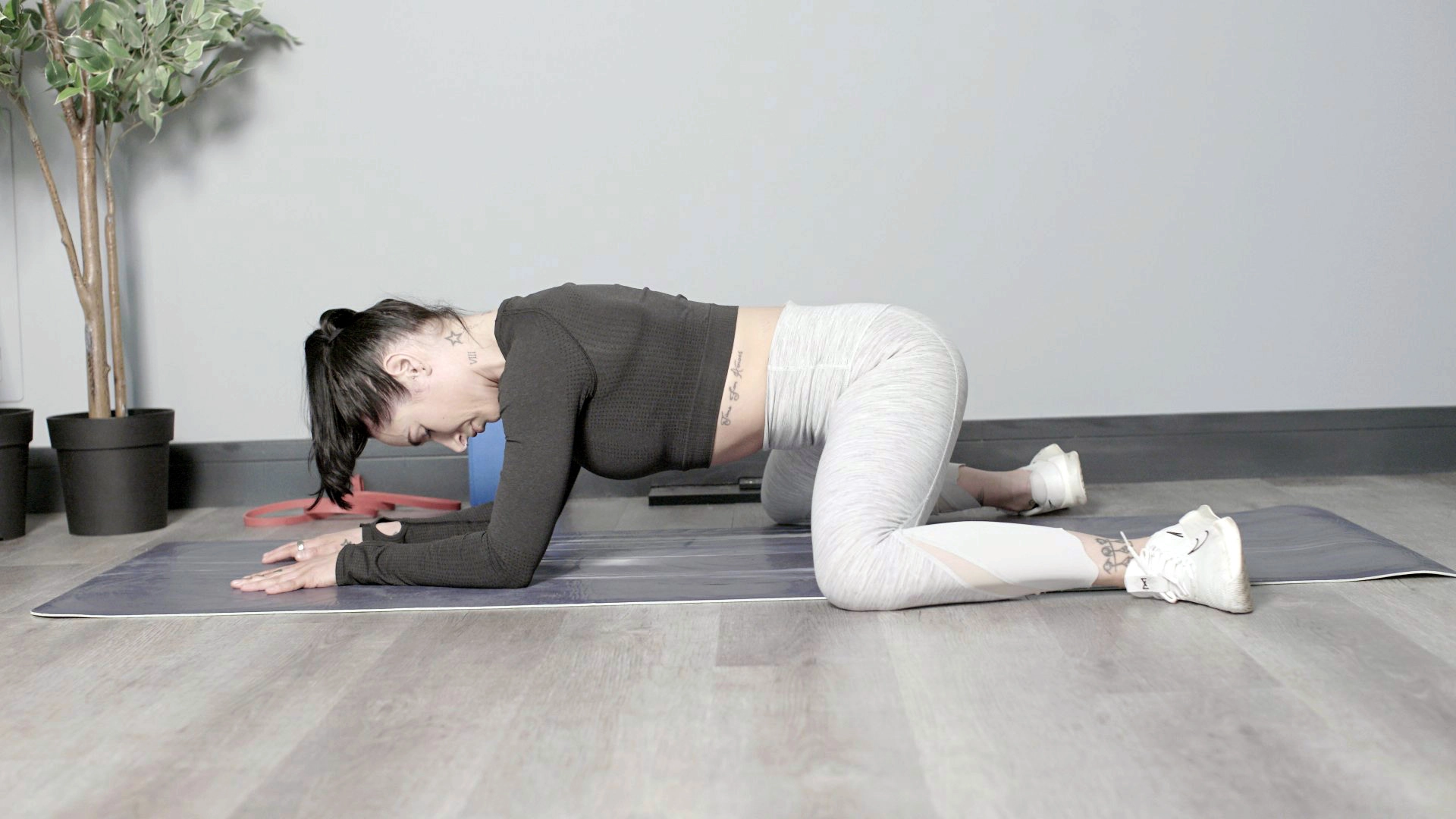 - Start in a tabletop position on hands and knees