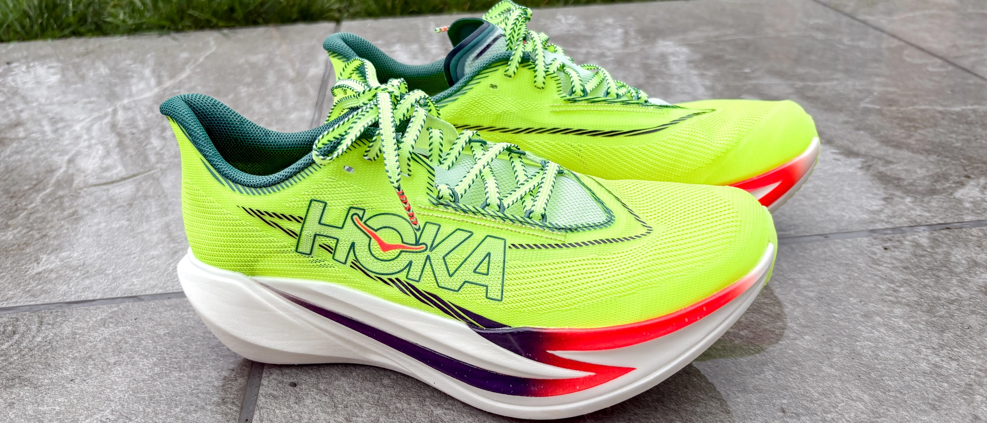 It’s the lightest Hoka racer yet, tipping the scales at 7.1oz in my US men’s size 9.5, which is 0.2oz lighter than the Rocket X3 in the same size, and 0.4oz lighter than the Hoka Cielo X1 2.0.